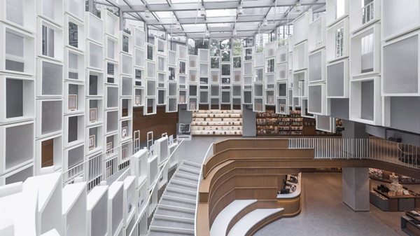 由意大利建筑設計公司 Kokaistudios 創造充滿設計感的筑蹊生活書店,位于浙江省第二大城市寧波市中心,1844 藝術生活中心廣場地下,建筑第一眼就已經讓人留下深刻印象,由扇形玻璃排列出現代化外觀,也呼應內部 L 型內部半透明壓克力板、水泥地面的原色低彩。