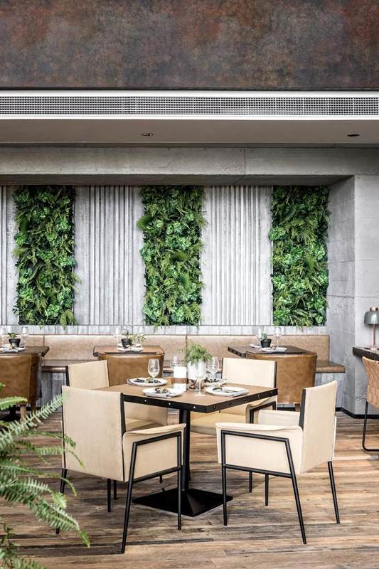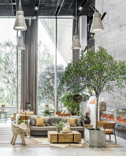 青翠的樹木、蕨類,手工編織的毛線靠枕,藤木編制的躺椅……這些自然的生態(tài)美納入空間中,給躁動喧鬧的現(xiàn)實(shí)生活以新鮮空氣,將紛繁的環(huán)境變得純粹與永恒。